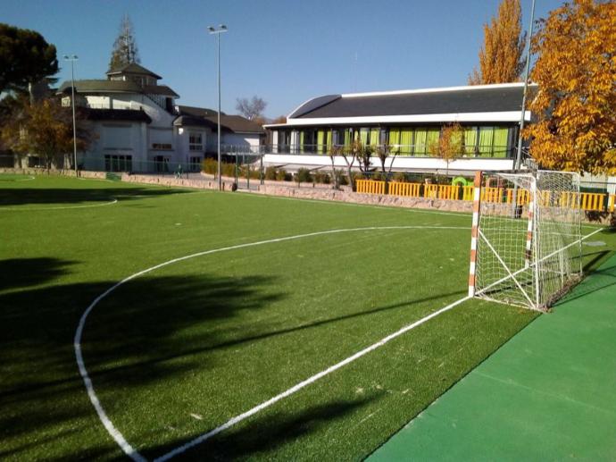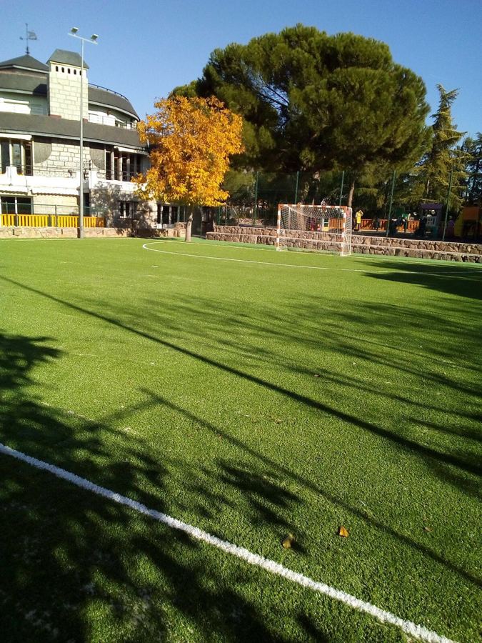 También hemos realizado el Diseño y construcción de campo de fútbol de césped artificial en colegio Montessori (Alpedrete, madrid)