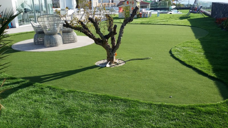 Aliviando la incidencia del sol de las épocas más calurosas se evitan quemaduras al pisar el césped descalzos y además se evita que el material sufra sobremanera por las altas temperaturas.
