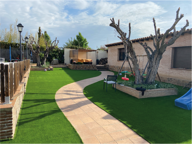 Nuestro césped es ideal para que los pequeños disfruten de una superficie 100% segura.