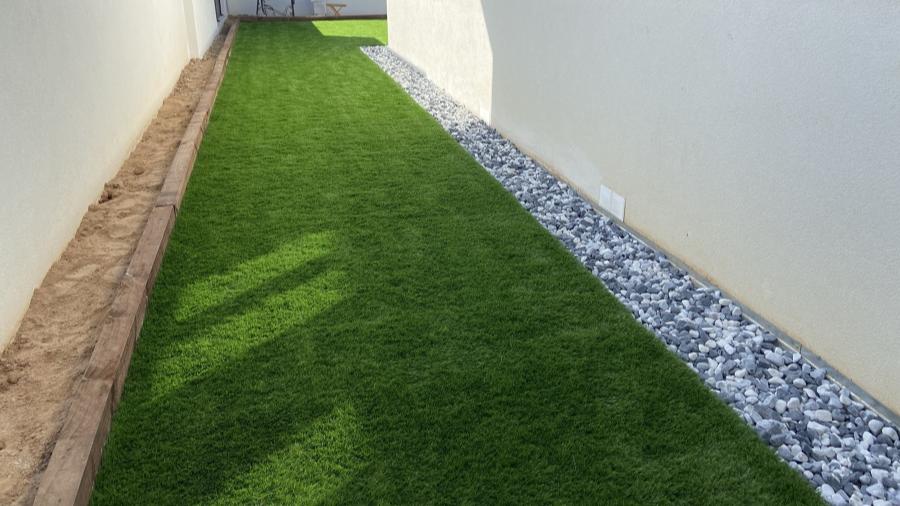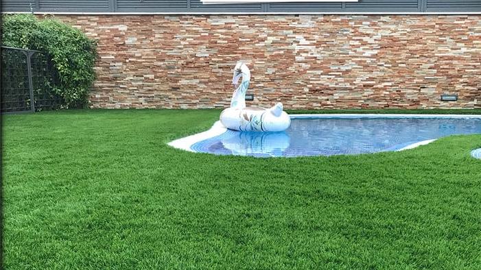 Césped artificial modelo Nature de 60mm instalado sobre hormigón, en esta preciosa casa de Montecarmelo
