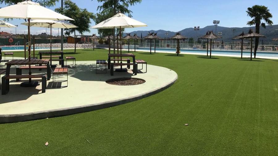 Instalación de césped artificial en complejo de ocio y deportivo. Para este proyecto, debido a la gran afluencia durante los meses veraniegos, se eligió un césped artificial fabricado en España de última generación, con gran resistencia, muy agradable al tacto y la pisada, con muy buena recuperación y lo más importante, este césped artificial es capaz de rebajar la temperatura entre 7 y 12 grados los días de más calor, lo que lo convierte en el césped artificial más fresco del mercado.