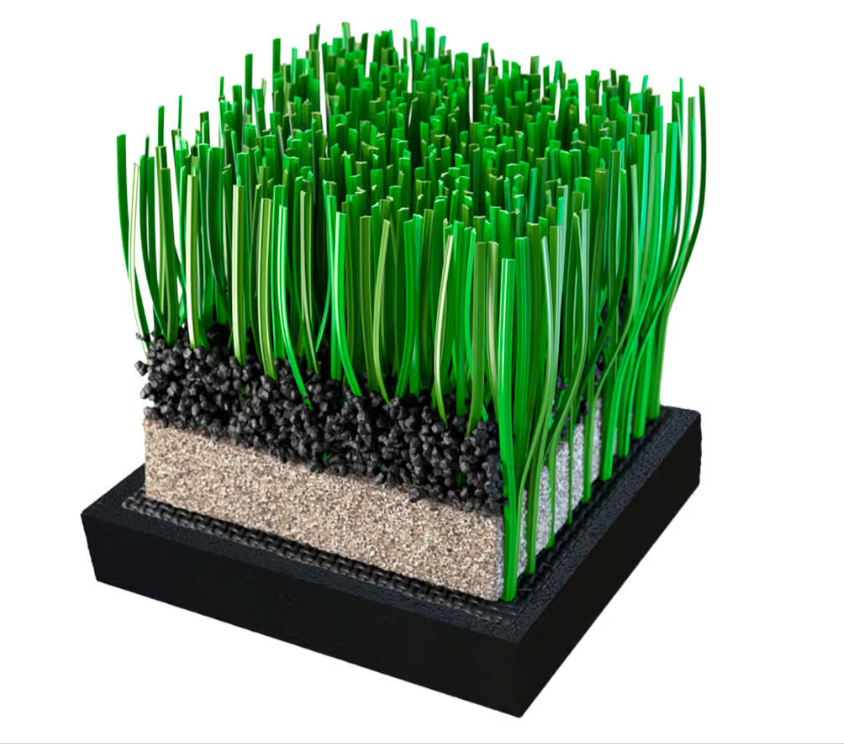 Con tratamiento anti UV y resistente a las inclemencias meteorológicas más extremas, se fabrica con tejido mediante sistema Tufting en línea con una galga de 3/8 de pulgada entre líneas de puntada sobre sistema de doble Backing de polipropileno y sellado de látex que garantiza la resistencia a arranque por tracción superior a 50 N.